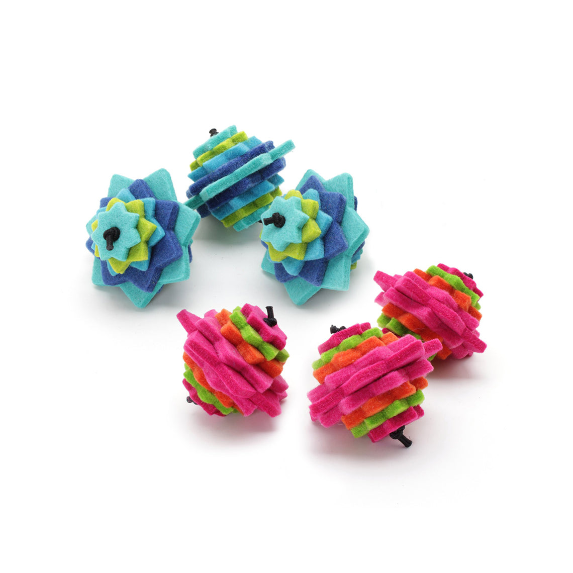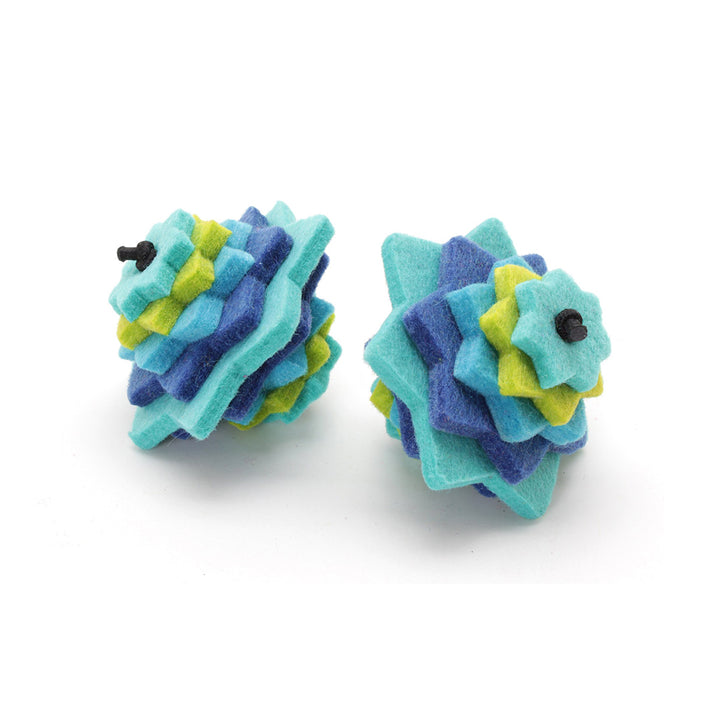 These designer toys are perfect for batting around and sliding across the floor. Cat's think the felt material is great for chewing, wrestling and pouncing. The light weight material and jagged shape keeps the trajectory of the toy random to engage your kitty in play. Keep your cat active and healthy with these Hauspanther cat toys. Who says cat toys can't be beautiful?