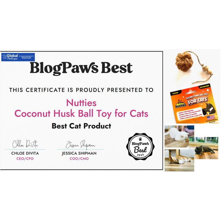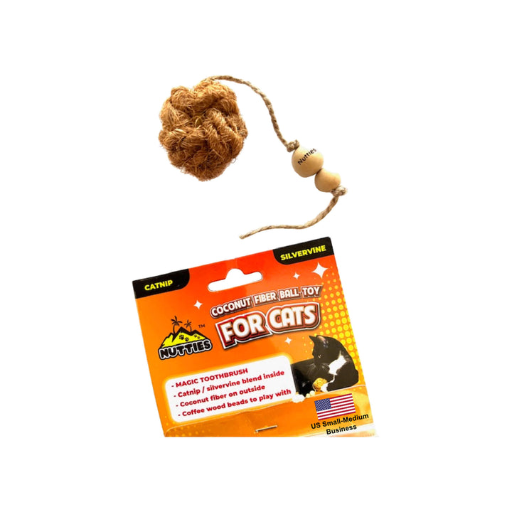 Give your cat a reason to pounce with Healthy Pet World Nutties Coconut Husk Dental Cat Toy—playful, engaging cat toys with catnip and silvervine.