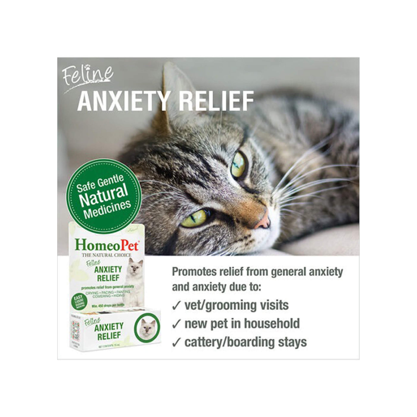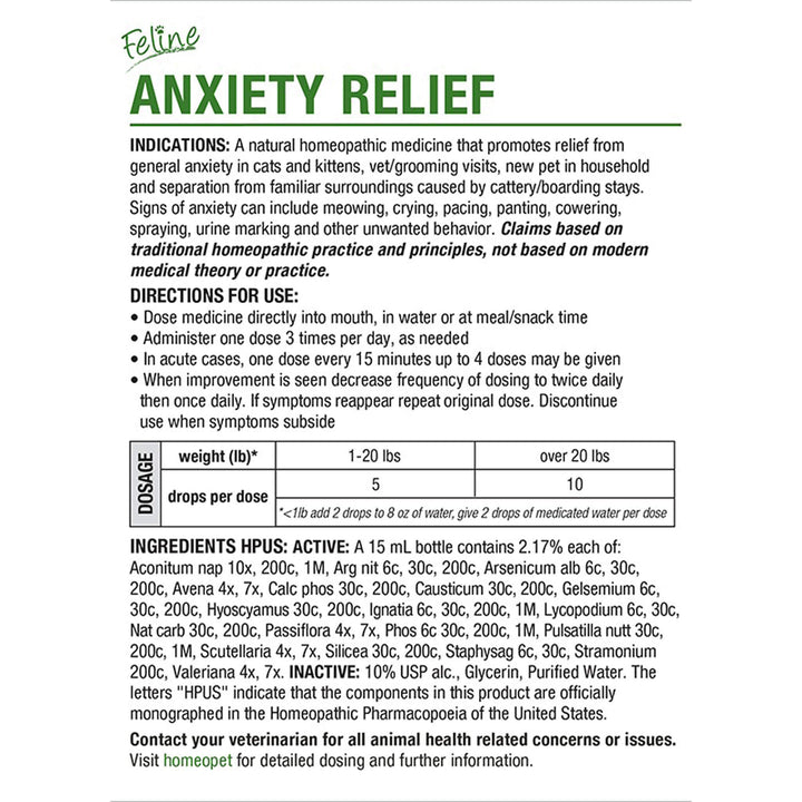 HomeoPet Feline Homeopathic Anxiety Relief Drops for Cats offer a natural way to ease stress and promote calm. This liquid anxiety relief for cats is designed to help with common triggers like vet visits, grooming, travel, or changes in the home. Made with safe, homeopathic ingredients, it’s suitable for cats of all ages—from curious kittens to wise seniors.