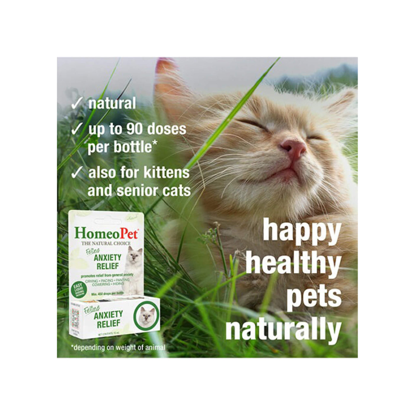 Formulated by veterinarians, HomeoPet Feline Homeopathic Anxiety Relief Drops for Cats are free from harsh chemicals and easy to administer. This liquid anxiety relief for cats can be given directly, mixed with food or water, or added to a treat—making it a stress-free solution for even the most sensitive pets. Each bottle offers up to 90 doses, depending on your cat’s weight.