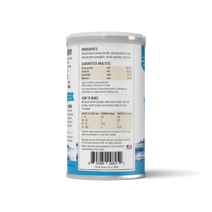 The Honest Kitchen Daily Boosters Bone Broth for Dogs & Cats is a versatile and flavorful broth designed for both dogs and cats. This mouthwatering broth can be enjoyed as a drink, poured over kibble to enhance flavor, or used to hydrate a freeze-dried meal.