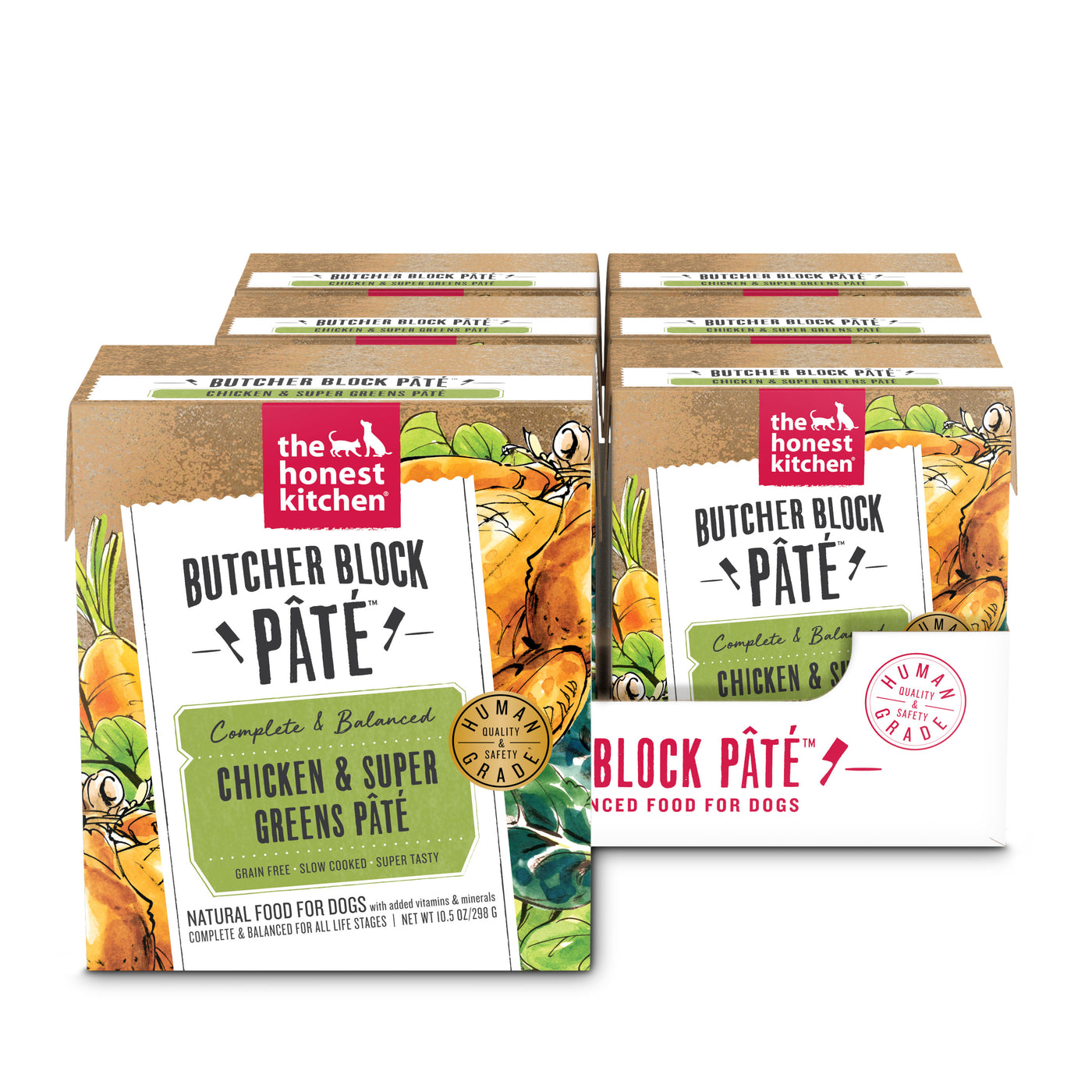 The Honest Kitchen Butcher Block Pate Dog Wet Food are made with human grade, whole foods. Honest Kitchen teamed up with a chef to make this smooth, hearty Butcher Block Pâté with ranch raised beef and farm veggies like carrots and green beans. Serve this hearty wet food as a complete meal or healthy mix-in that helps you boost your pup's health and happiness from the inside out.