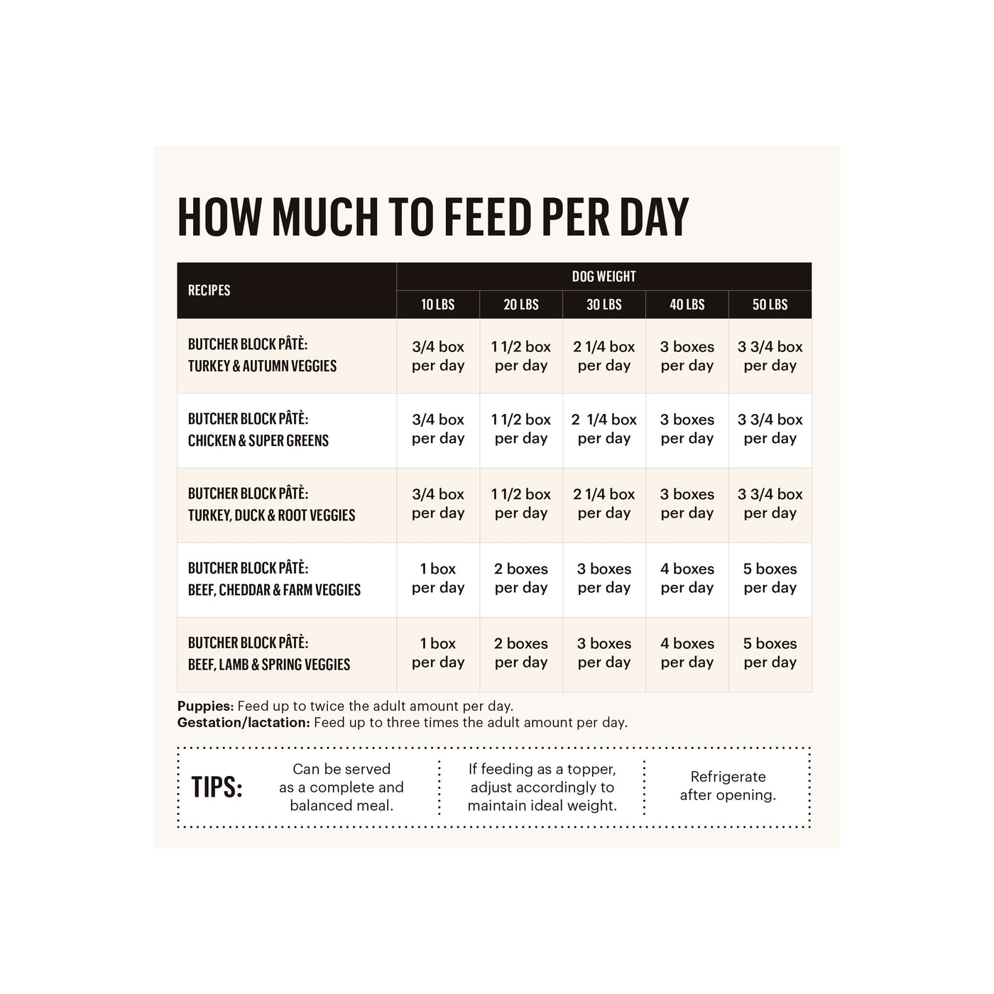- Mix it in with your pup’s regular breakfast, lunch, or dinner—serve it as a complete meal. Bone appetit!