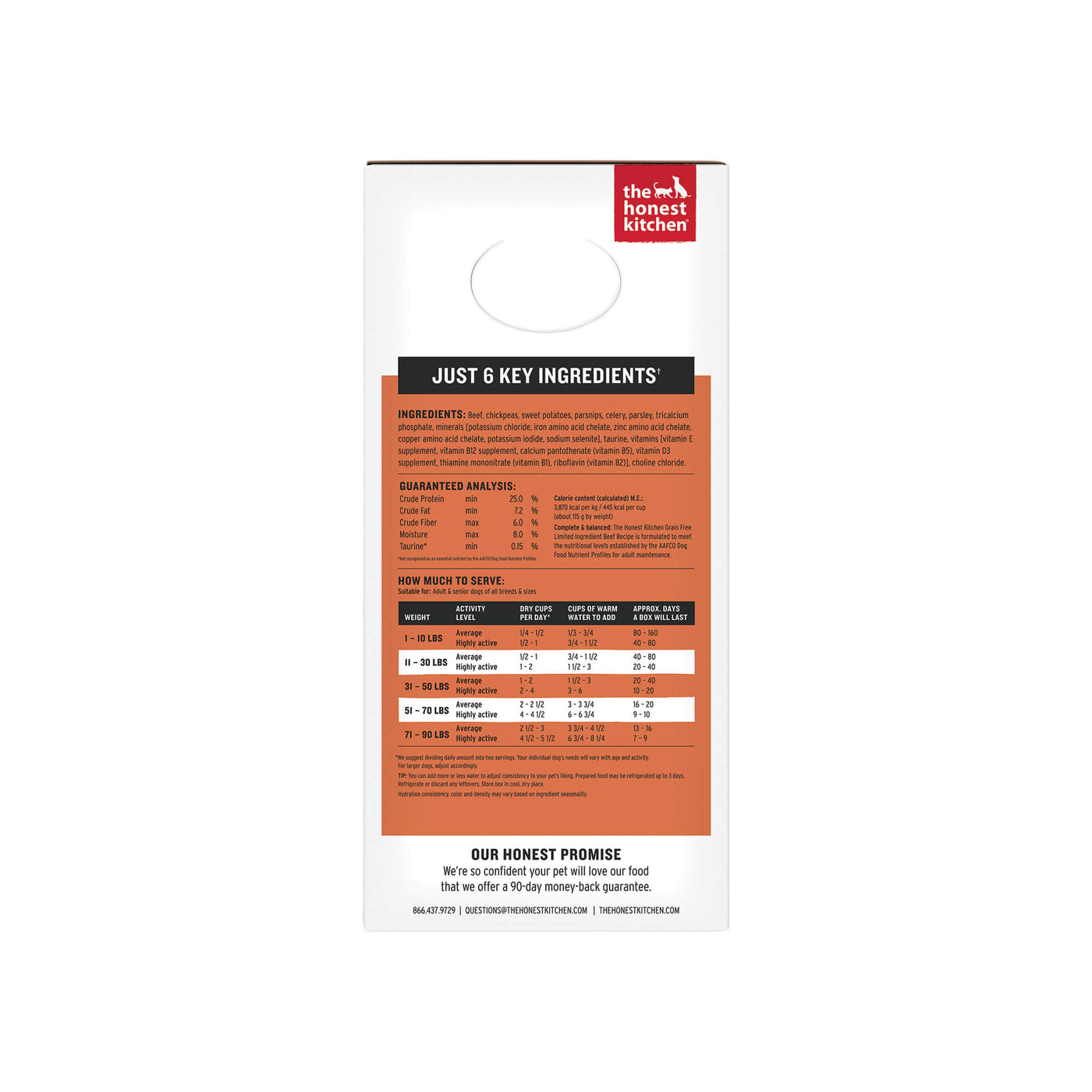 Each 10 lb box contains approx. 40 cups of foodCountry of origin: USAManufacturer: The Honest Kitchen - Ingredients
