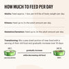 Adult: Feed approximately 1 pack per 6 - 8 pounds of body weight per day.