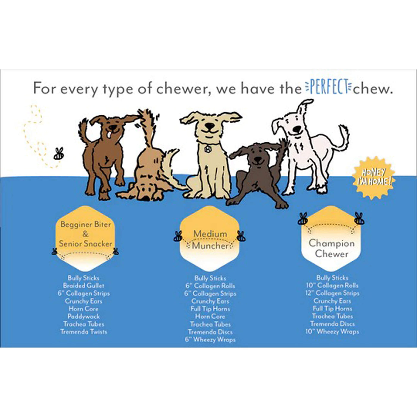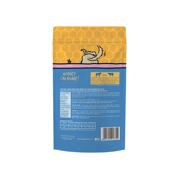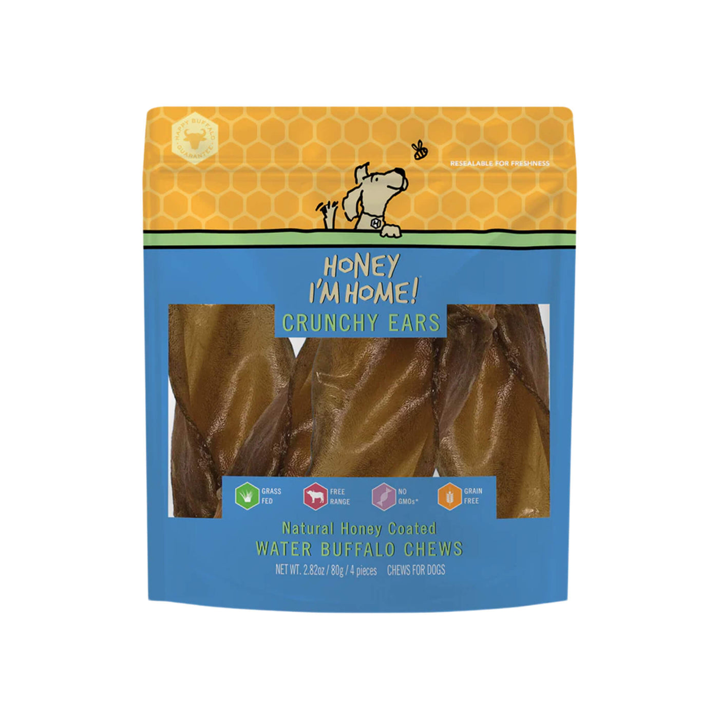 From ears and tracheas to crunchy strips and bones, Honey I'm Home Dog Treats come in a variety of shapes and textures. These honey coated water buffalo dog treats are free from artificial preservatives and made to support clean chewing for all life stages.