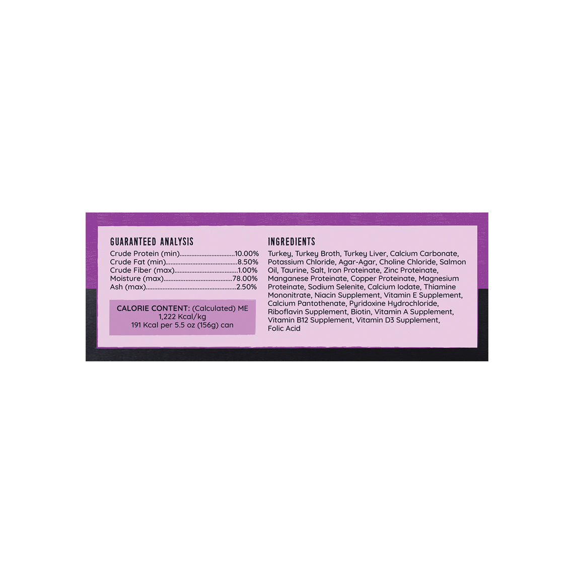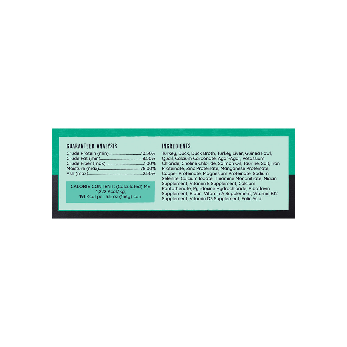 ME (calculated): 1358 kcal/kg, 212 kcal per 5.5 oz (156g) can