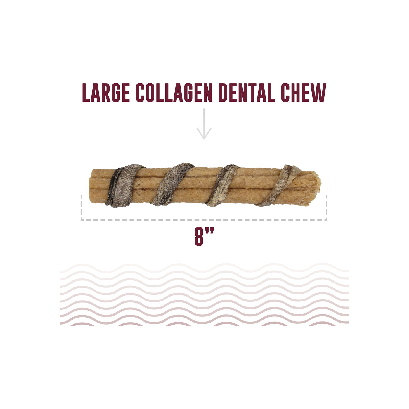 Icelandic+ Beef Collagen Dental Dog Chew with Wrapped Fish are an excellent rawhide alternative. Made with granulated collagen formed with deep ridges and a spiral wrap skin to reach back teeth and small spaces, these chews help promote good dental health.