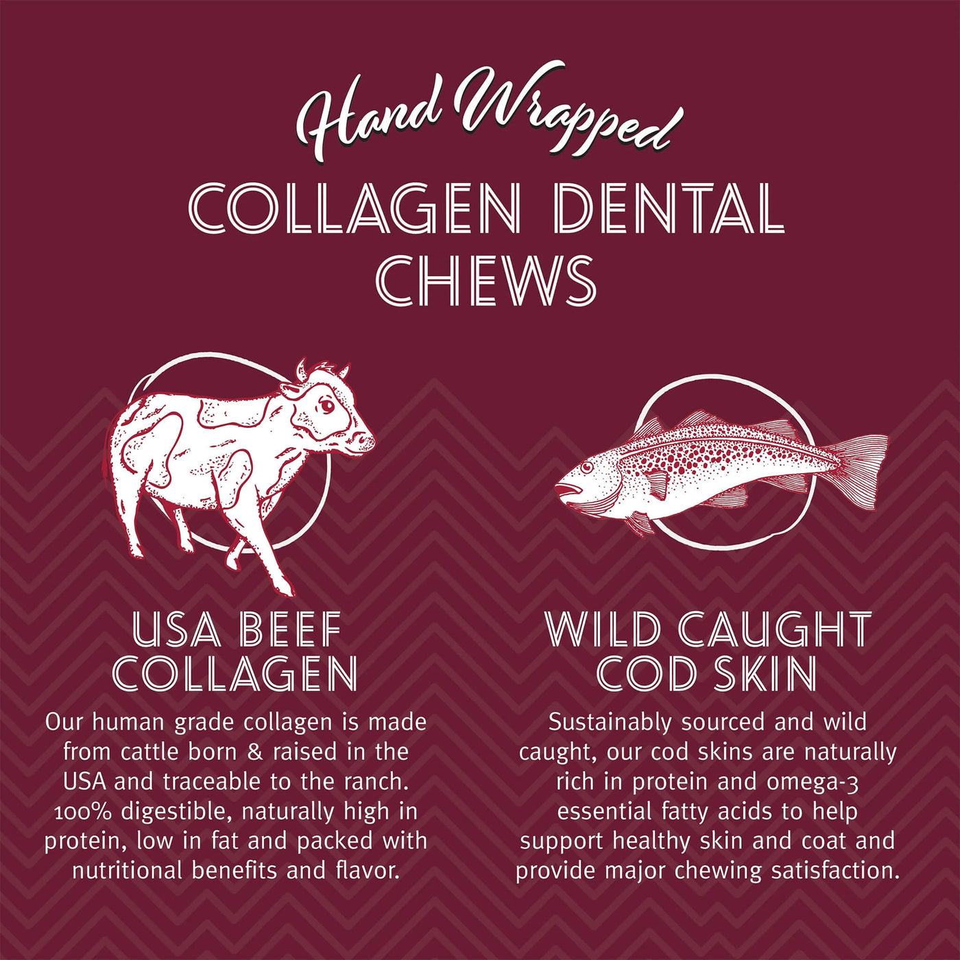 Icelandic+ Beef Collagen Dental Dog Chew with Wrapped Fish are a 100% digestible, long-lasting chew sure to entertain even the pickiest of dogs. Each chew is made from all-natural beef raised in the USA and hand-wrapped with an extra tasty wild-caught Atlantic cod skin for the best 2-in-1 chew.