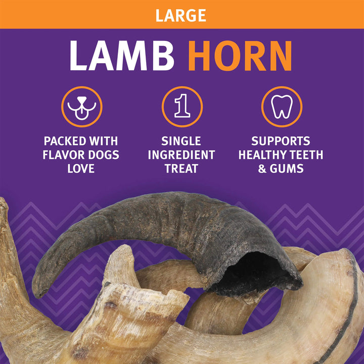 Icelandic+™ Large Lamb Horns come in a variety of natural colors and measure 6.5 inches for large in length. Each package contains 1 lamb horn.
