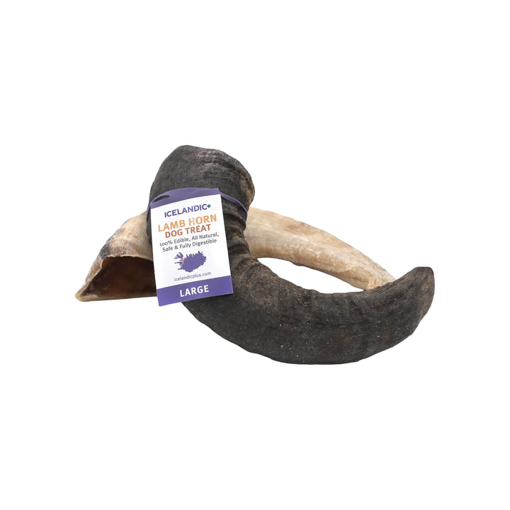 Icelandic+ Lamb Horn Dog Chew are all natural and edible, composed of compact hair fibers called keratin. When your dog chews on the horn it unravels and mimics dental floss making these a great chew for boredom as well as dental health. Peace of mind with Icelandic + - each chew is cleaned, boiled, and baked within FDA, USDA, EU, and MAST standards and regulations.