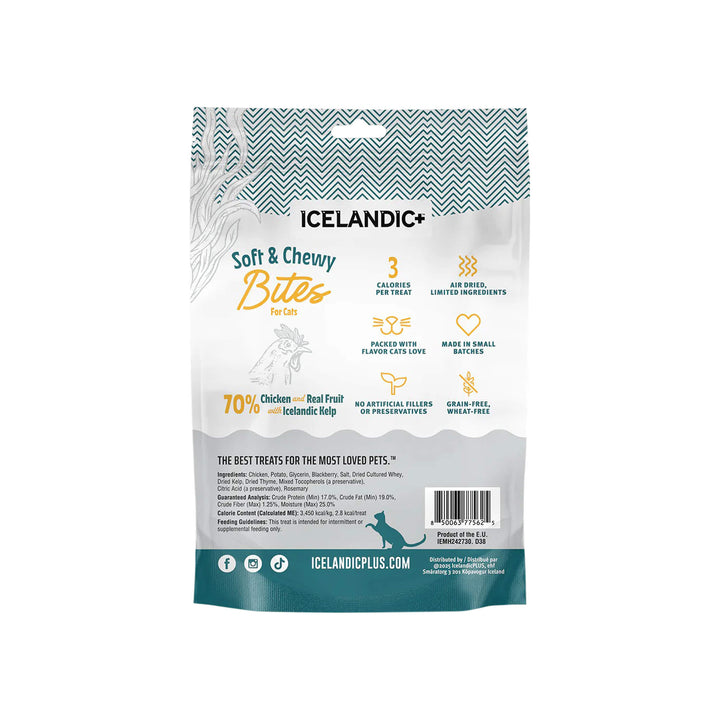 Chicken blended with blackberry and kelp creates a soft, chewy treat with a savory base and lightly sweet finish.Country of origin: IcelandManufacturer: Icelandic+ - Ingredients