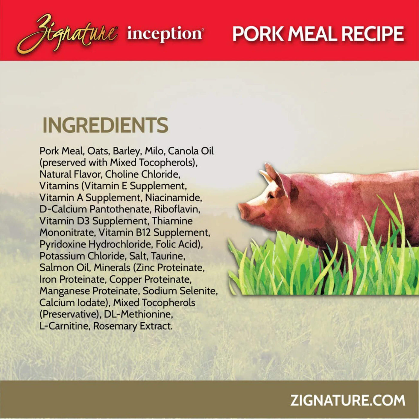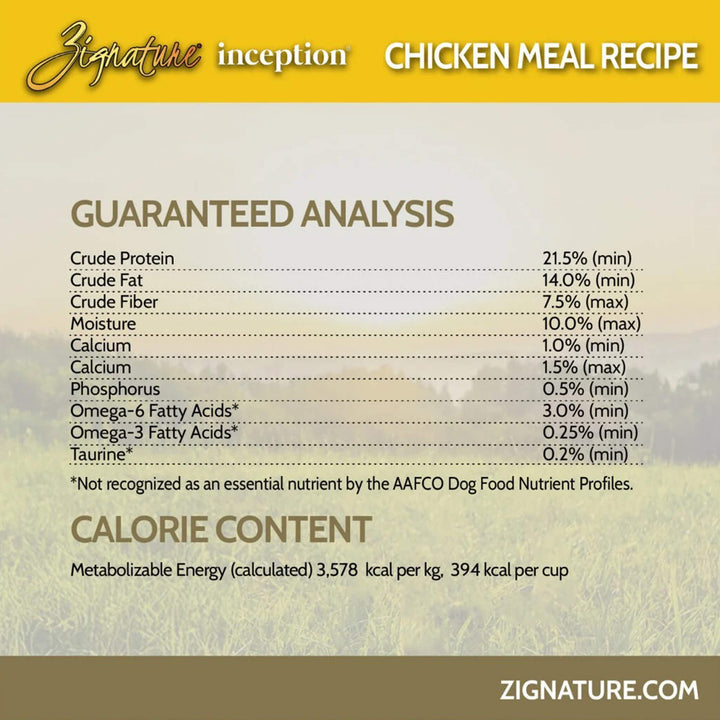Zignature Inception Grain Inclusive Dry Dog Food delivers purposeful nutrition built around animal protein as the first ingredient. This meat first dog food with wholesome grains includes carefully selected ancient grains to support balanced energy and digestibility. Zignature Inception Grain Inclusive Dry Dog Food is formulated to provide complete, everyday nourishment without unnecessary fillers, making it a reliable choice for dogs who thrive on thoughtfully sourced ingredients. Explore more thoughtfully crafted recipes from Zignature.