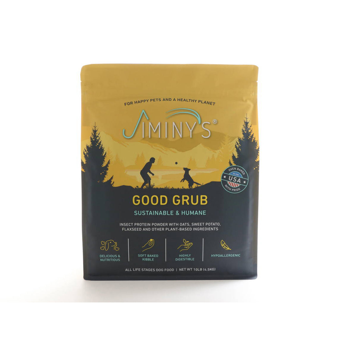Jiminy's Good Grub Dog Food is an earth-friendly kibble that utilizes Black Solider Fly larvae or Grubs combined with plant-based ingredients and turns them into a complete and balanced diet.
