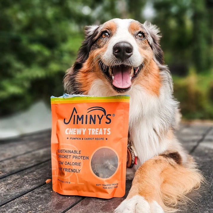 Jiminy's Chewy Treats for Dogs are finding innovative ways to practice being more sustainable and earth conscious. Insects use less resources than traditional animal based dog products. By switching to a bug-based food or dog treat, you could save thousands of gallons of water a year!