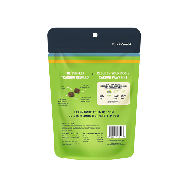 Jiminy's Sweet Potato & Pea Chewy Cricket Dog Treats - These small treats are a tasty and sustainable way to reward your dog!