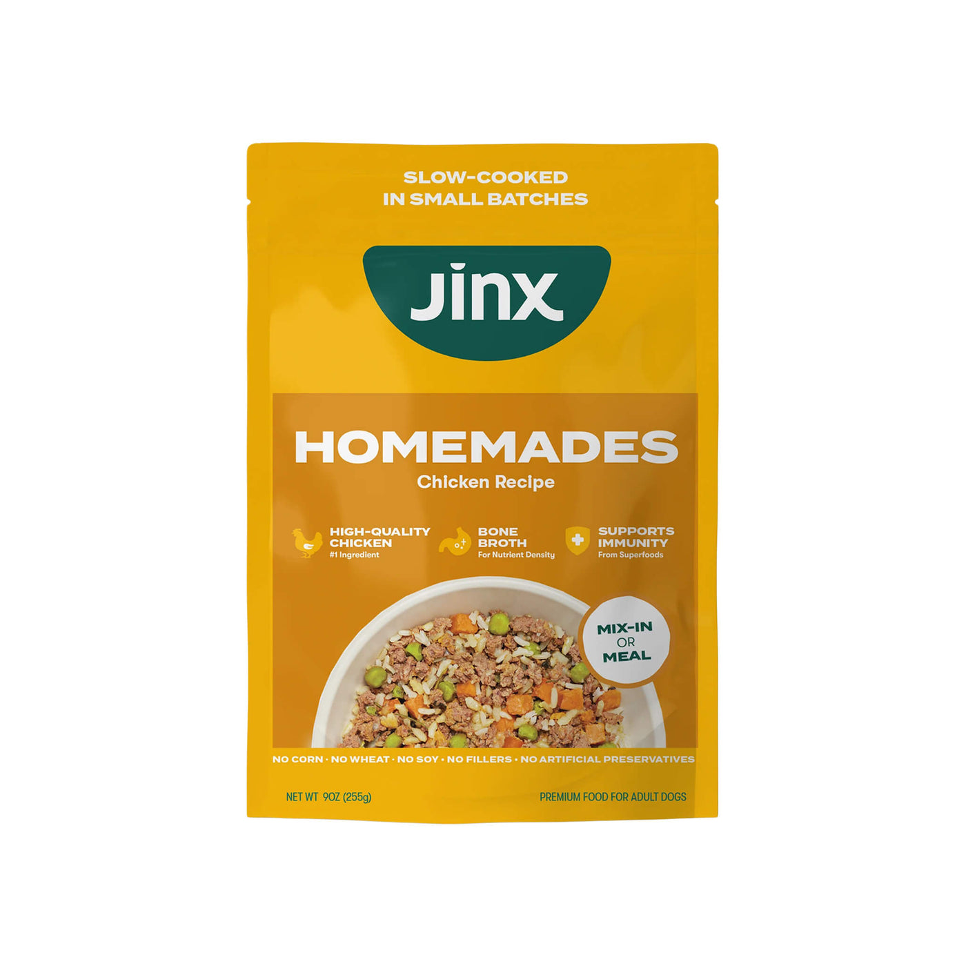 Jinx Homemades Chicken Recipe is formulated to meet the nutritional levels established by the AAFCO Dog Food Nutrient Profiles for Maintenance.