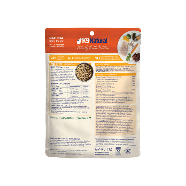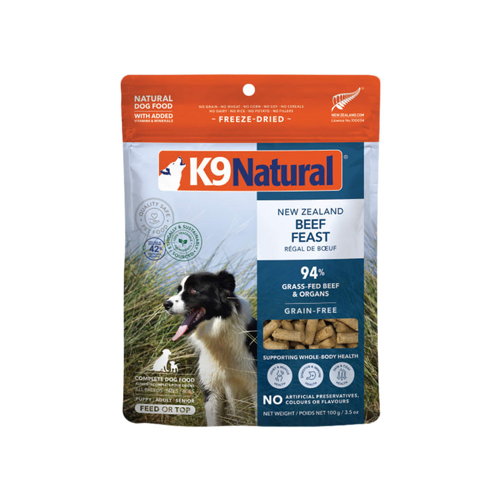 Each flavor of K9 Natural Freeze Dried Dog Food Toppers is grain-free, gluten-free, and features no corn or soy. Each flavor is packed full of nutrients and feature high quality proteins to give your dog's meal a boost of nutritious benefits.