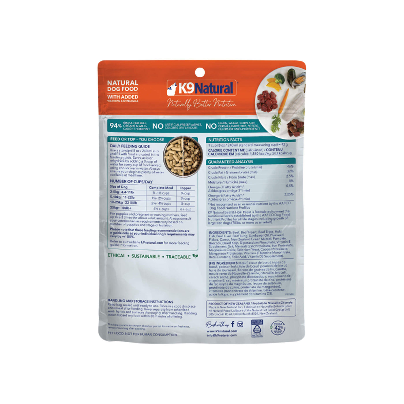Boost your dog’s meals with a K9 Natural Topper, a high-protein, freeze-dried meal enhancer made with 90–100% real meat. Packed with essential nutrients from premium animal proteins like beef, lamb, and green tripe, these freeze-dried dog food toppers support digestion, muscle health, and overall vitality. Simply sprinkle over kibble or wet food to add irresistible flavor and extra nutrition. Free from grains, gluten, corn, soy, and artificial additives, this natural topper makes every bite more nutritious and delicious. Check out our full lineup of tasty, nutrient-packed toppers to mix, match, and satisfy your pup’s cravings!