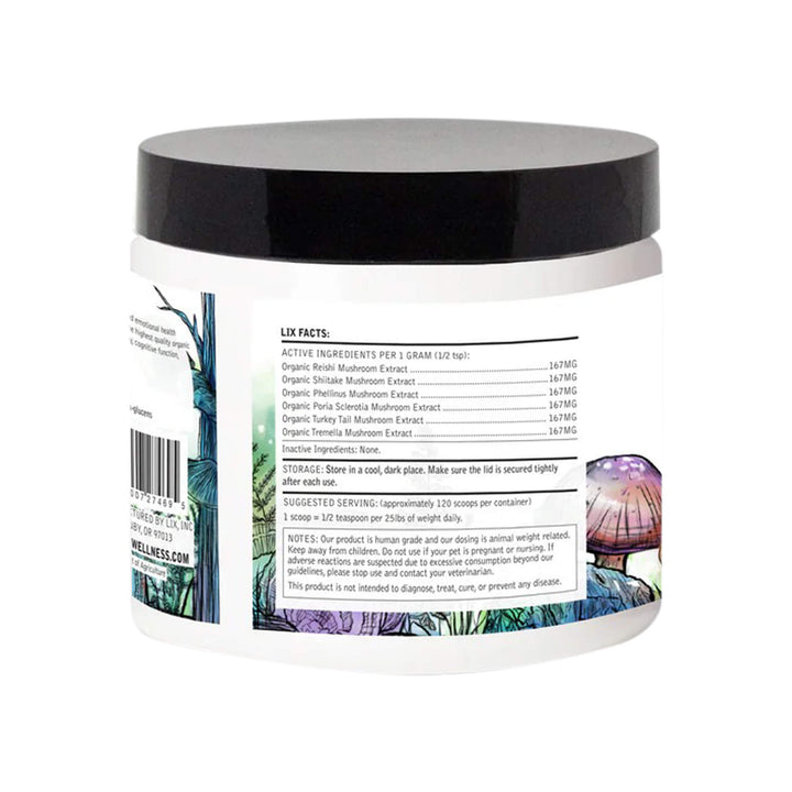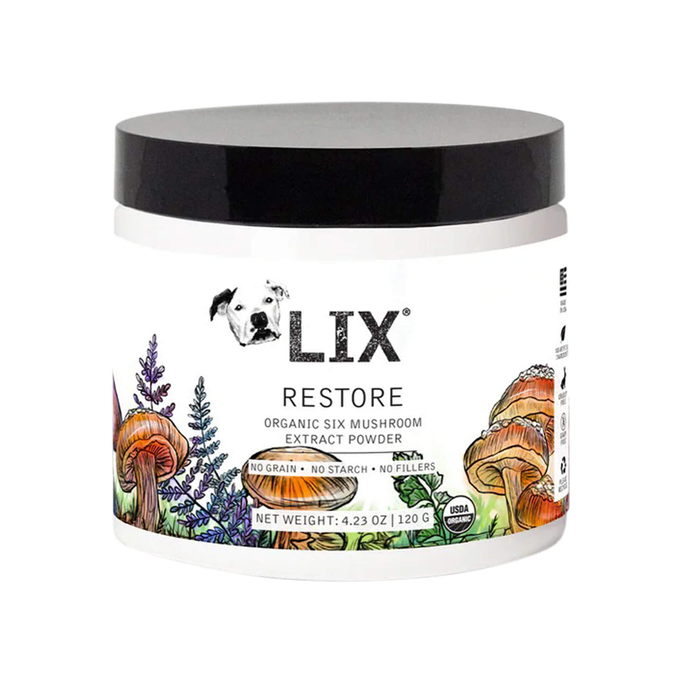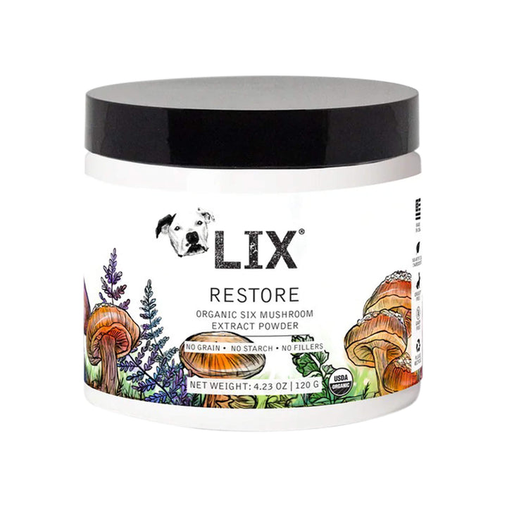 LIX Restore Mushroom Powder for Dogs & Cats is a premium supplement made with carefully selected organic mushrooms for dogs and cats to promote balance and vitality. Each serving delivers powerful adaptogens that help support immune health, stress response, and cognitive function.