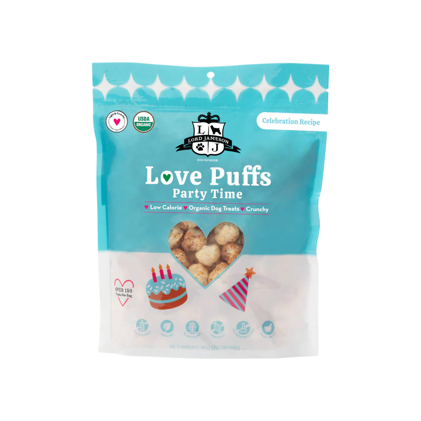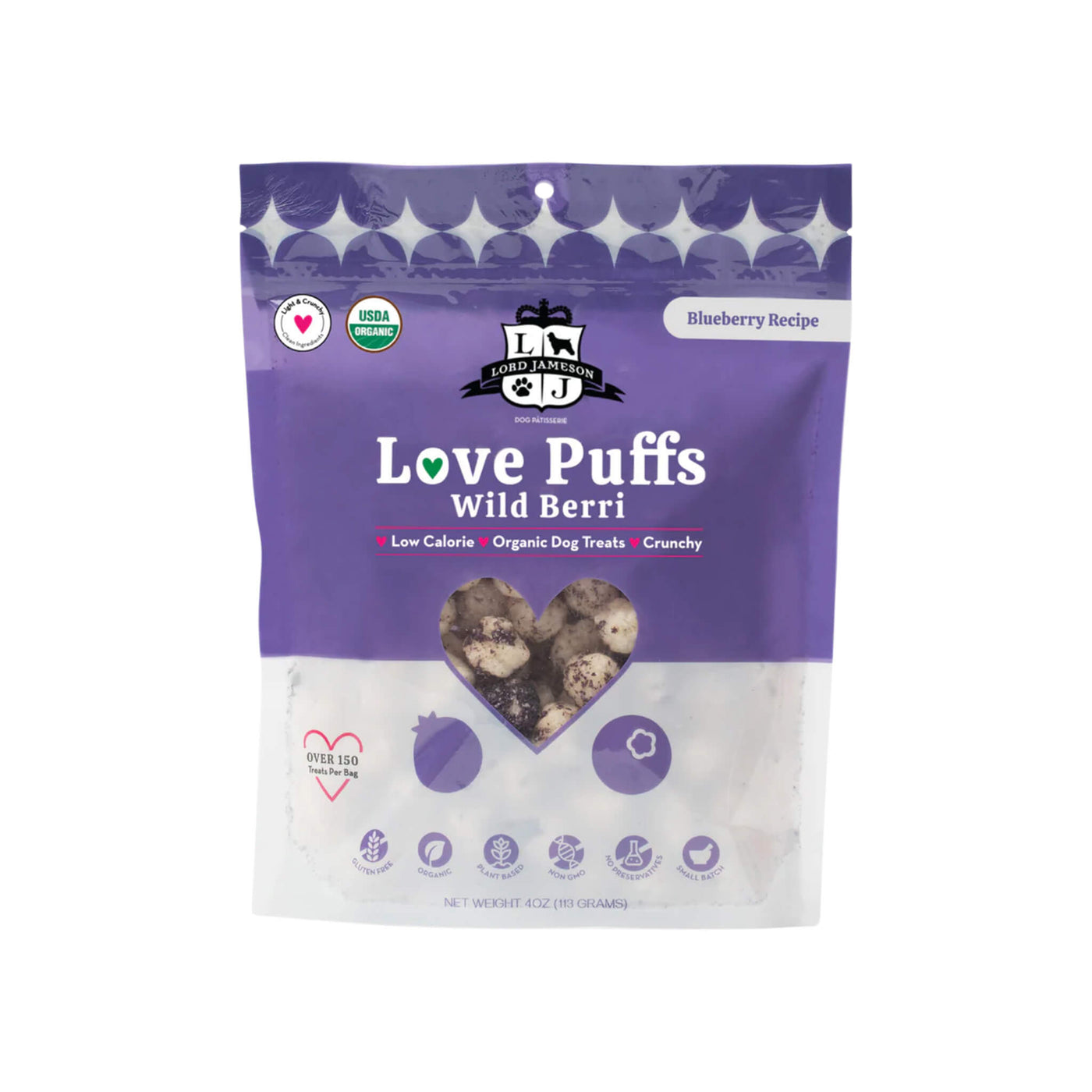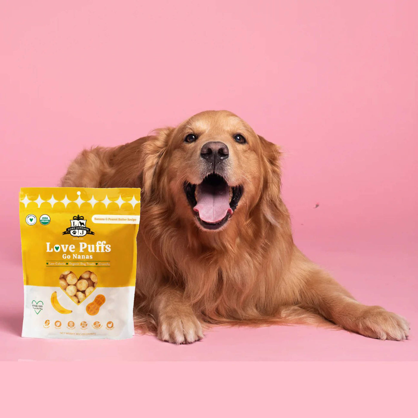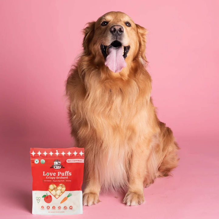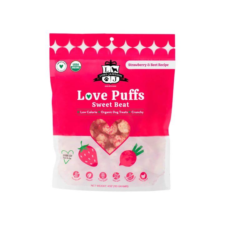 Reward your pup with Lord Jameson Love Puffs Dog Treats—organic crunchy dog treats baked with love and crafted for joyful moments.