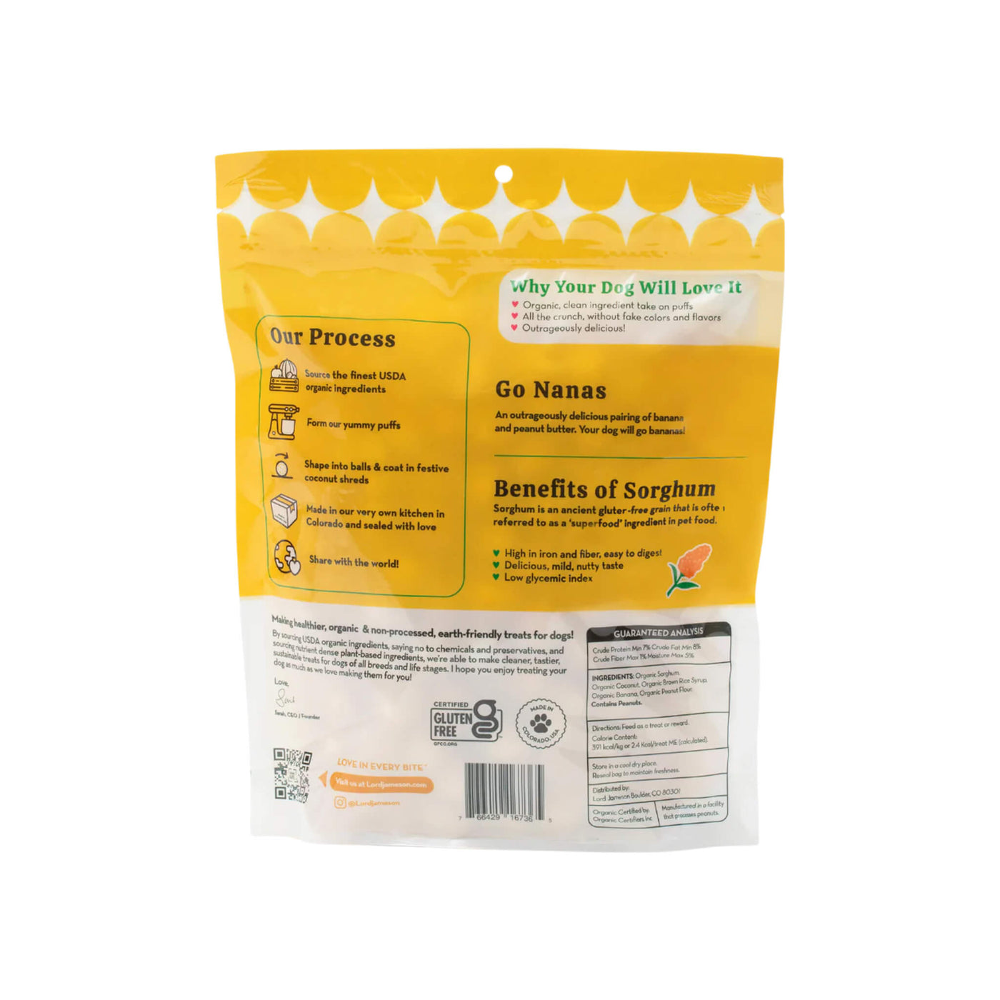 Each piece of Lord Jameson Love Puffs Dog Treats is gently baked to perfection, creating a crisp texture without the use of fillers or artificial additives. These organic crunchy dog treats deliver plant-based nutrition with every bite for guilt-free snacking.