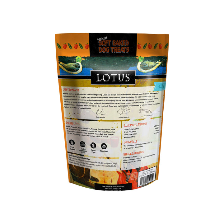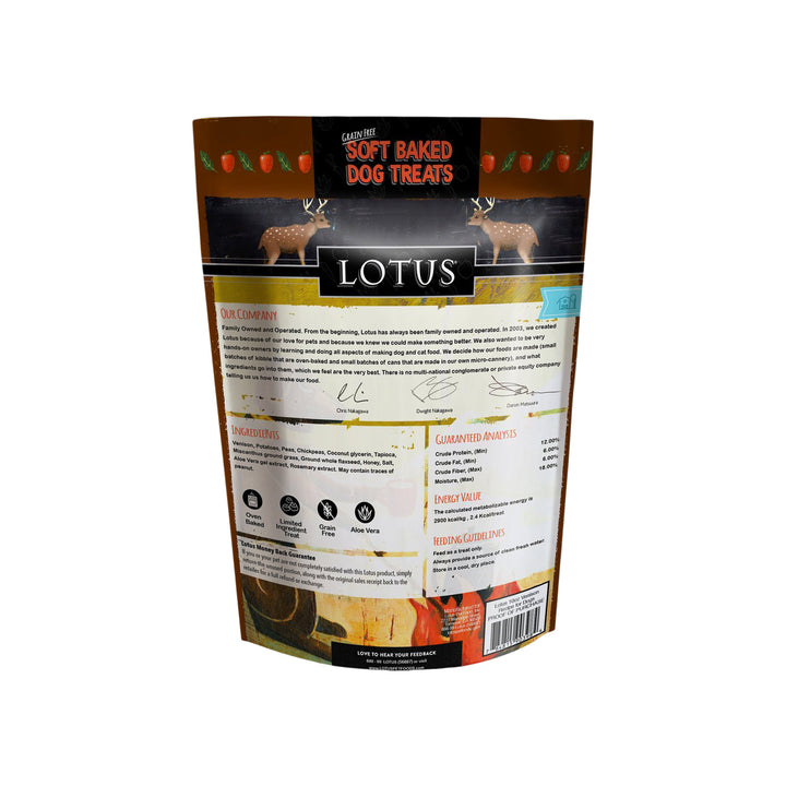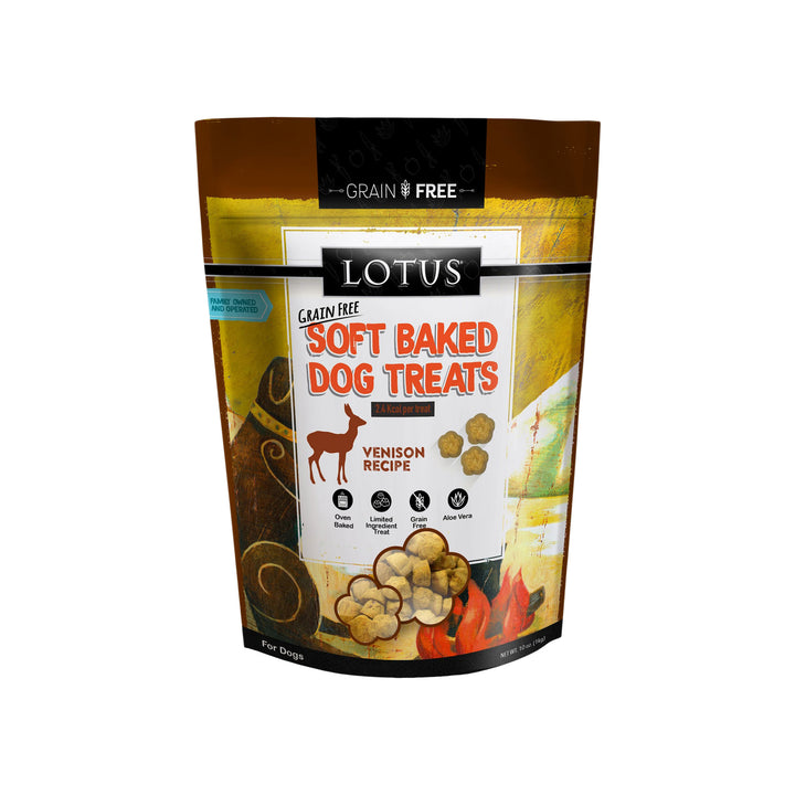 Every bite is made without fillers like corn, wheat, or soy, ensuring a clean, high-quality treat that puts your dog’s wellness first. Whether you're using them for training, rewarding good behavior, or simply spoiling your furry friend, Lotus Grain Free Soft Baked Treats are the perfect healthy snack.