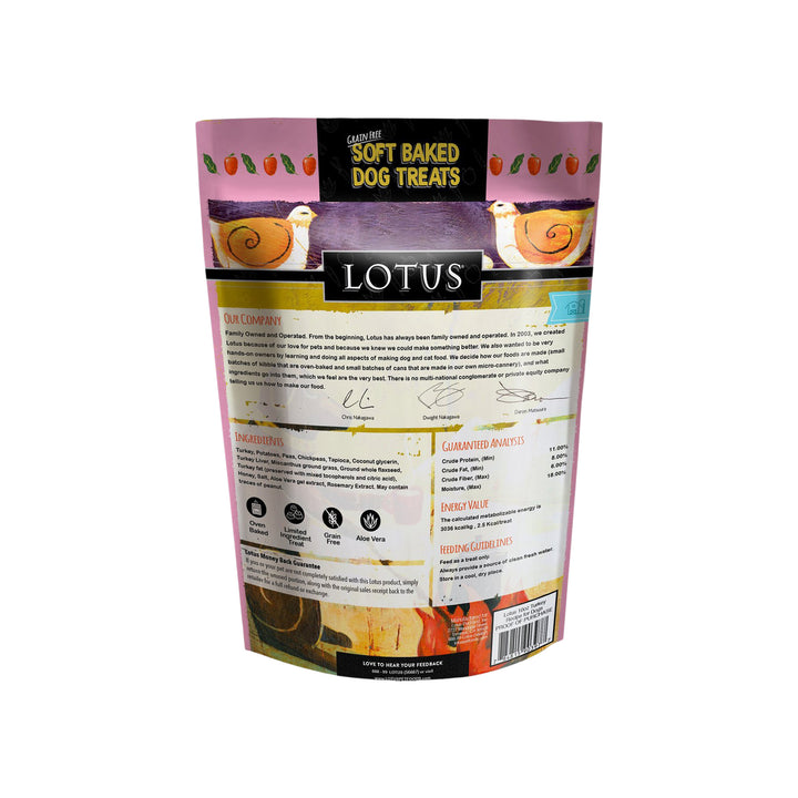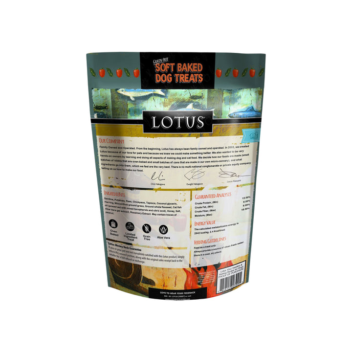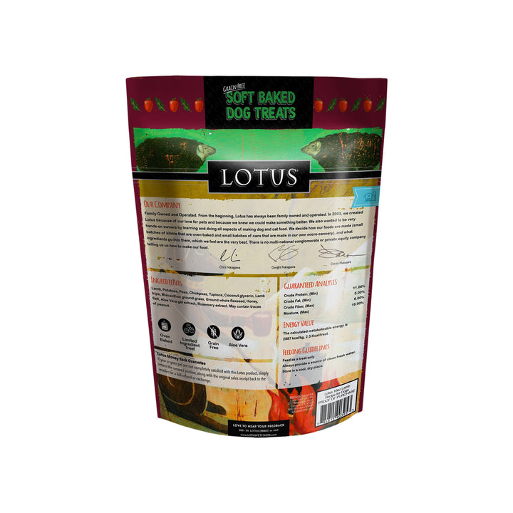 Lotus Grain Free Soft Baked Dog Treats are a wholesome way to reward your dog with a treat that's as nutritious as it is delicious. Soft, oven-baked, and packed with flavor, these treats feature an irresistible texture that dogs of all breeds and ages are sure to love.
