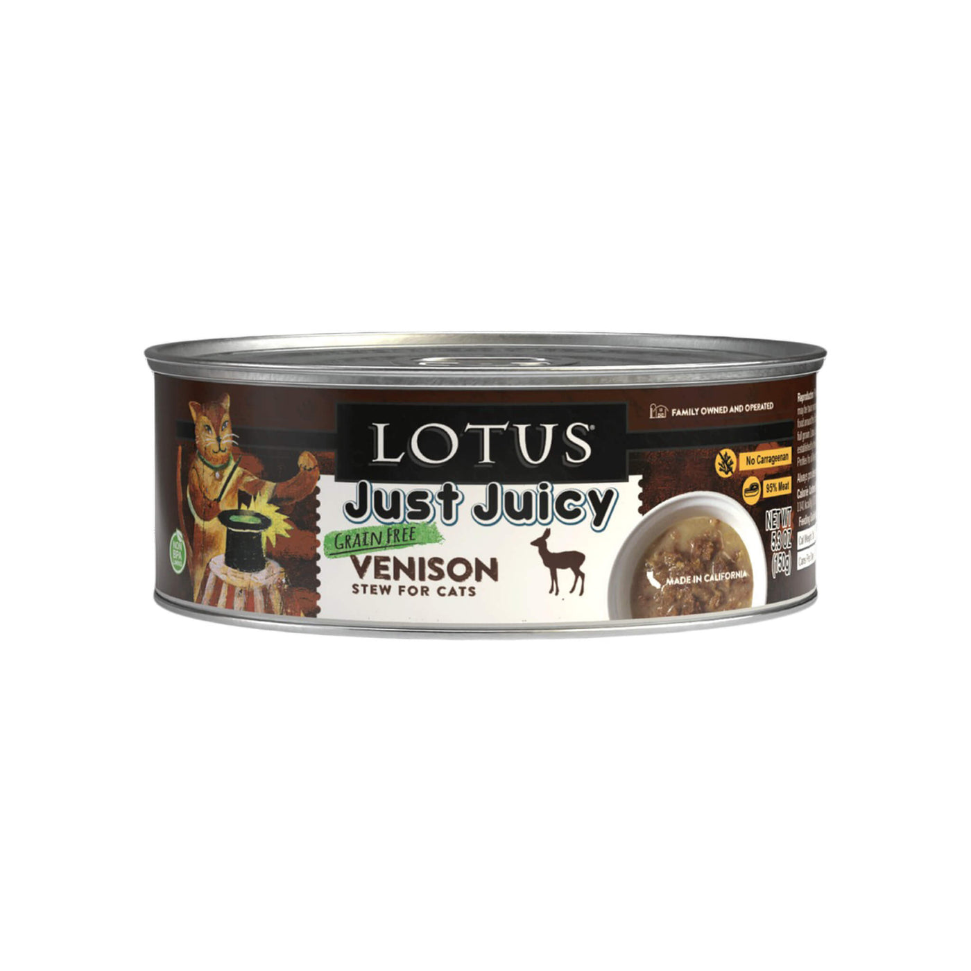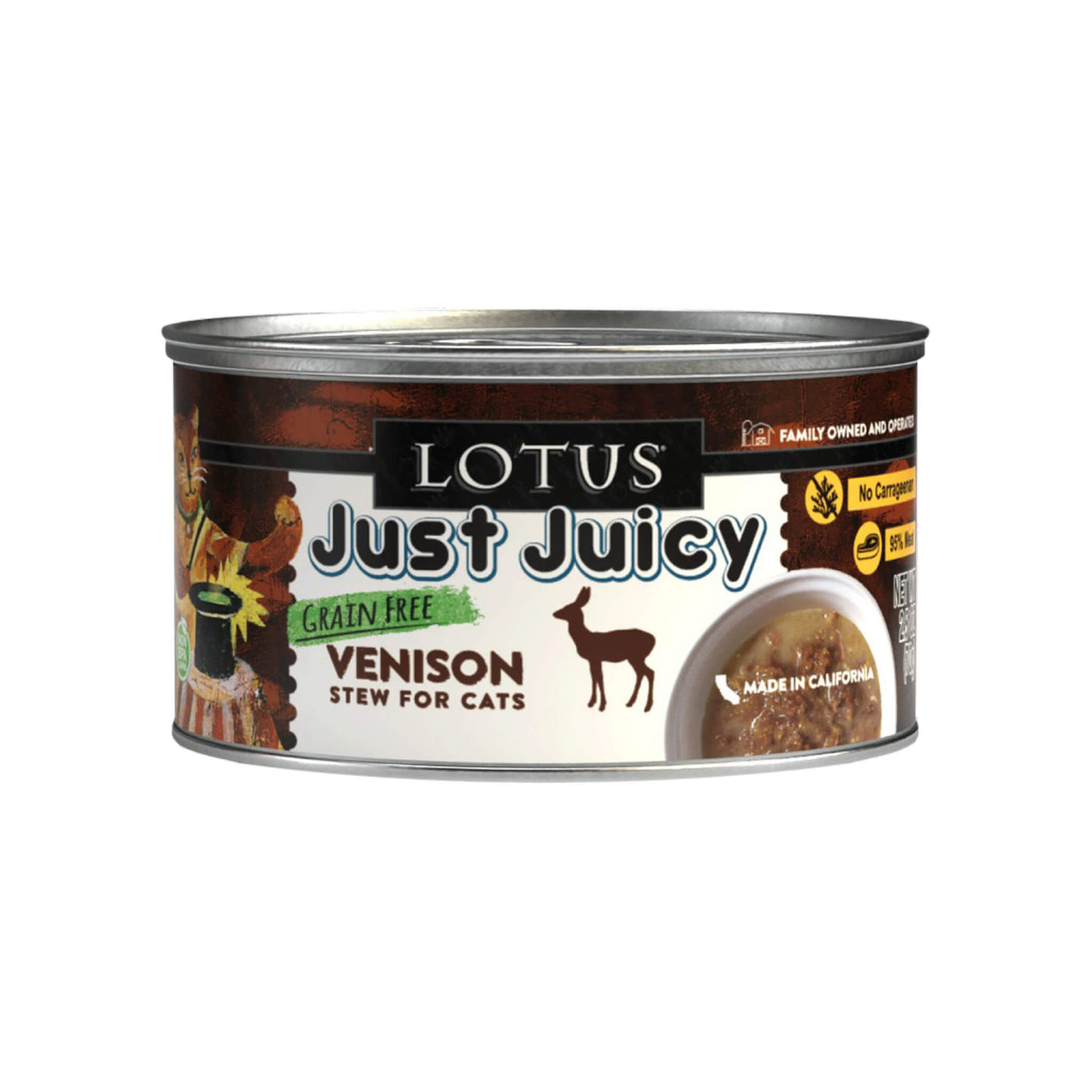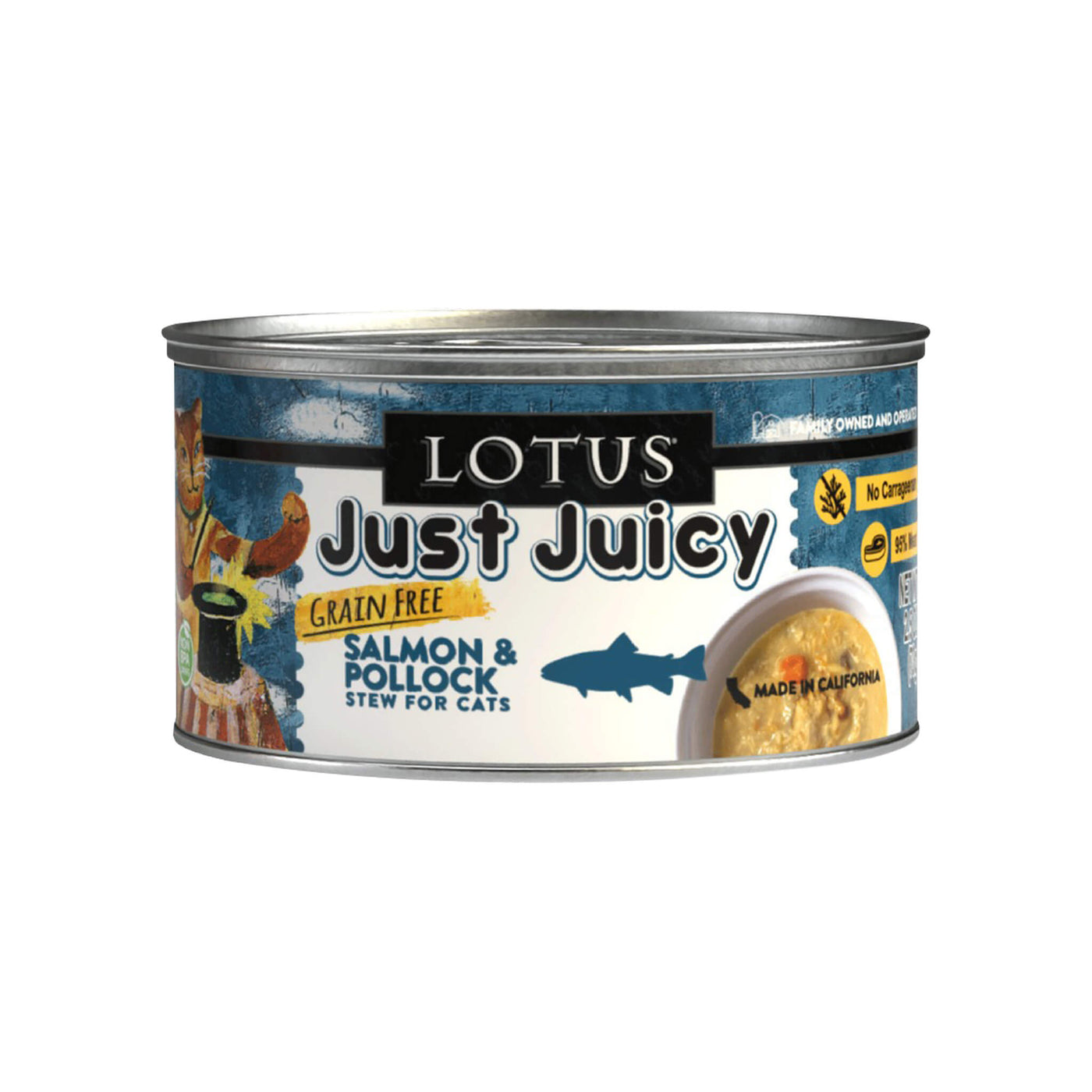 Made in the USA with limited ingredients and no gums or carrageenan, Lotus Just Juicy Stew for Cats supports hydration and sensitive stomachs. This grain-free wet cat food uses responsibly sourced animal proteins and simple recipes ideal for rotational feeding.