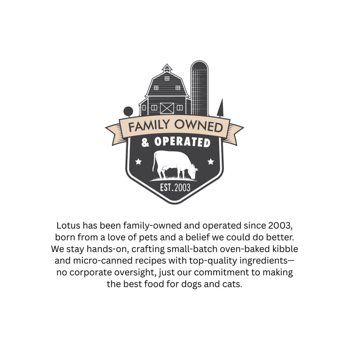Lotus Oven Baked Kibble Grain Free Dry Dog Food is thoughtfully crafted to deliver exceptional nutrition and taste for dogs of all life stages. Each batch is oven-baked in Canada in small quantities to ensure freshness, consistency, and superior quality. By using fresh meats, poultry, and fish raised without added hormones or antibiotics, along with non-GMO fruits and vegetables, Lotus provides a wholesome, balanced meal you can feel good about serving.
