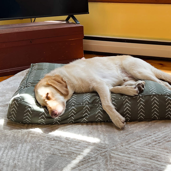 The Molly Mutt Dog Bed Duvet Cover turns old pillows, blankets, or clothes into a cozy dog bed that’s as good for the planet as it is for your pup. This organic cotton dog bed cover is patented for its calming benefits—your scent stays on the items you stuff inside, bringing comfort and reassurance to your dog.
