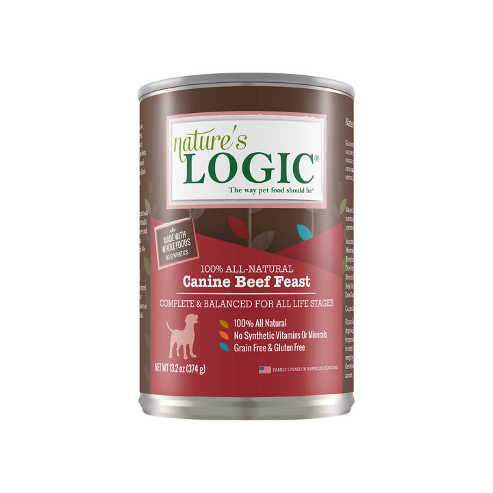 Nature's Logic Canine Beef Feast is a highly palatable and nutrient dense muscle meat and organ meat based canned food that uses whole ingredients and never includes synthetic ingredients.