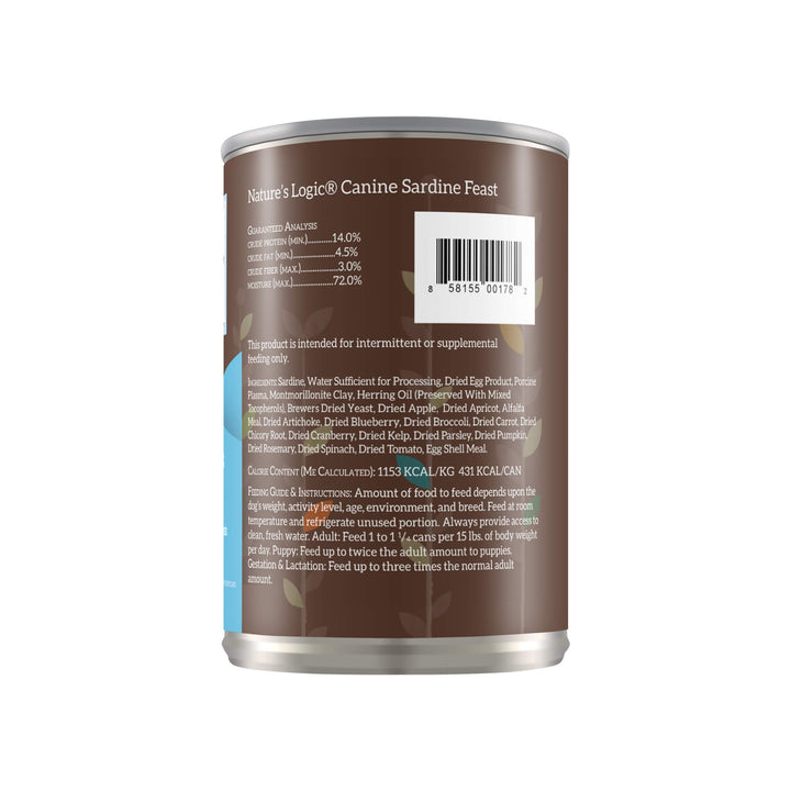 Nature's Logic Canine Sardine Feast is a highly palatable and nutrient dense muscle meat and organ meat based canned food that uses whole ingredients and never includes synthetic ingredients.