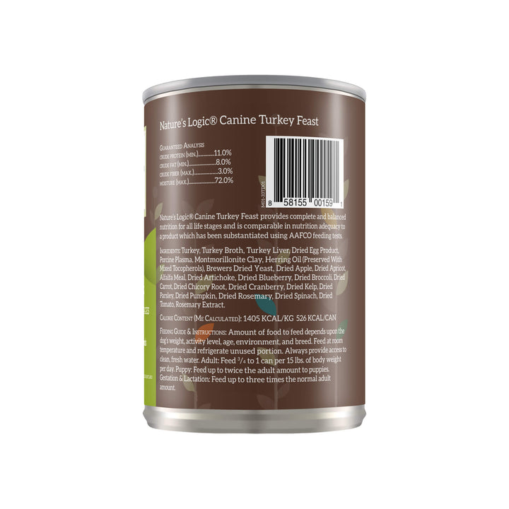 Nature's Logic Canine Turkey Feast is a highly palatable and nutrient dense muscle meat and organ meat based canned food that uses whole ingredients and never includes synthetic ingredients.