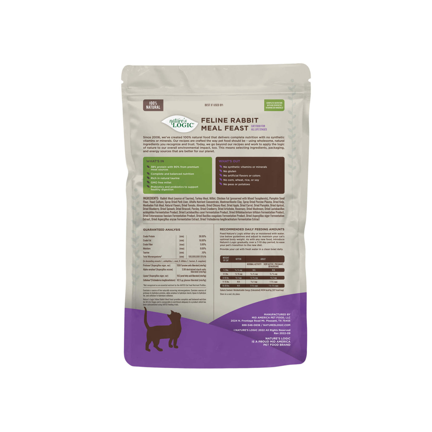 Nature's Logic Feline Meal Feast Dry Cat Food is a premium dry cat food made with high quality meat sources. It is gluten free and contains no peas, corn, wheat, potatoes, or soy.