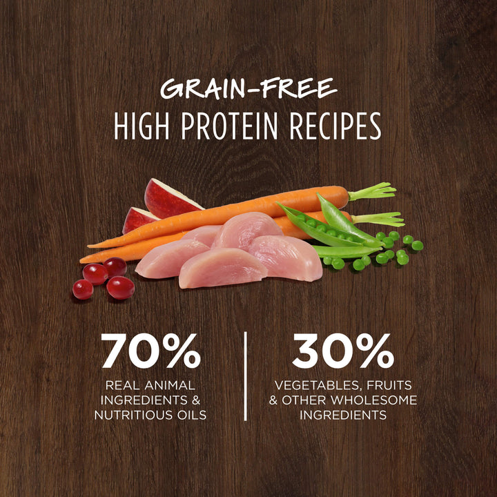 This high-quality, grain-free dog food is crafted to provide essential nutrients for muscle strength, energy, and overall well-being. Made with real meat as the primary ingredient, it delivers a protein-rich meal designed to support your dog's natural instincts.
