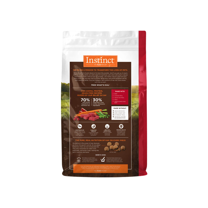 Free from grains, artificial additives, and fillers, Instinct Original Dry Dog Food provides a wholesome, balanced diet perfect for dogs of all ages. Its carefully selected ingredients make it a top choice among those seeking premium grain-free dog food.