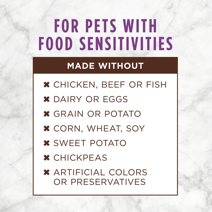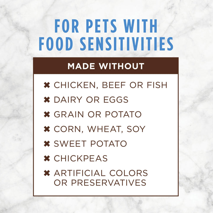 • Single Animal Protein: Uses one animal protein for food sensitivities.