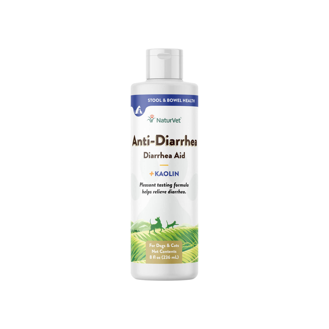 NaturVet Anti-Diarrhea Liquid for Dogs & Cats helps firm stool and soothe the digestive tract during bouts of intestinal upset. This cat and dog diarrhea supplement contains kaolin and pectin to absorb toxins, coat the intestinal lining, and support normal stool consistency.