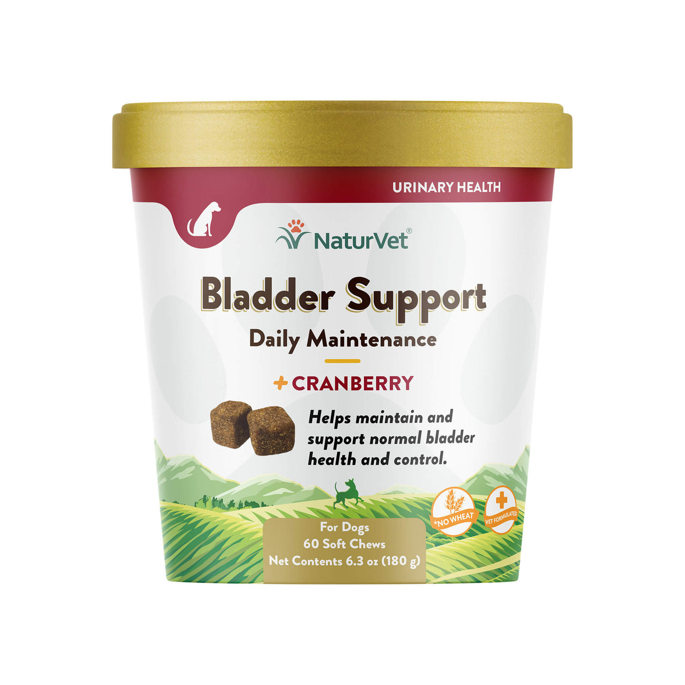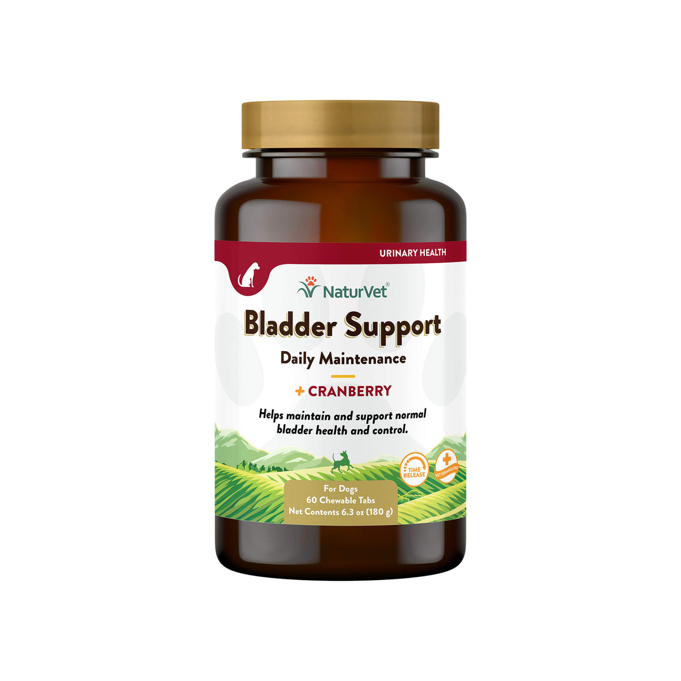 NaturVet Bladder Support Supplement for Dogs promotes healthy bladder function and urinary tract health. This dog bladder health and control supplement includes cranberry extract and other key ingredients to help maintain normal urinary pH and strengthen bladder muscles.