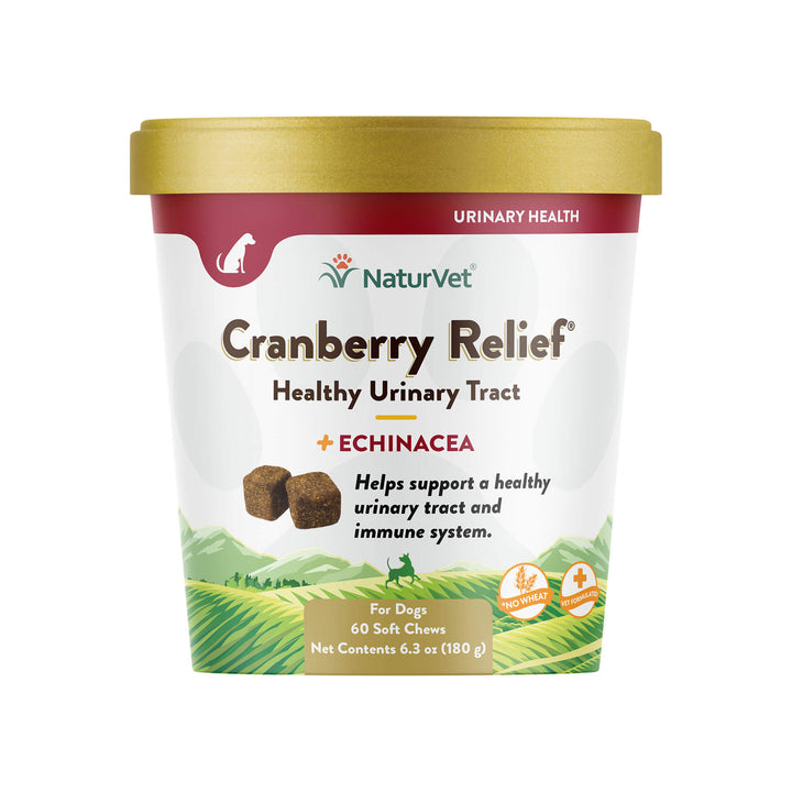 NaturVet Cranberry Relief Plus Echinacea for Dogs supports urinary health and immune system function in a gentle, effective formula. This urinary tract supplement for dogs contains cranberry extract to help maintain normal urine pH and echinacea to strengthen natural defenses.