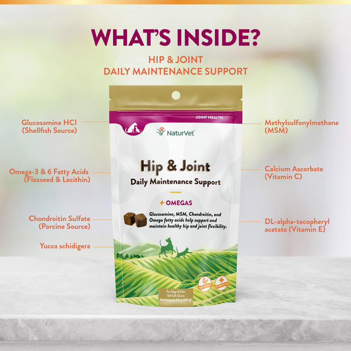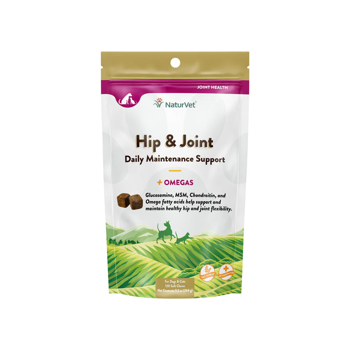 The Naturvet Hip & Joint 120 chews are veterinarian formulated and recommended to support healthy hip and joint function. The advanced formulation helps to support synovial fluid that lubricates joints and helps maintain healthy cartilage and connective tissue. Containing glucosamine, chondroitin and MSM, these active ingredients will keep your pet healthy and active.
