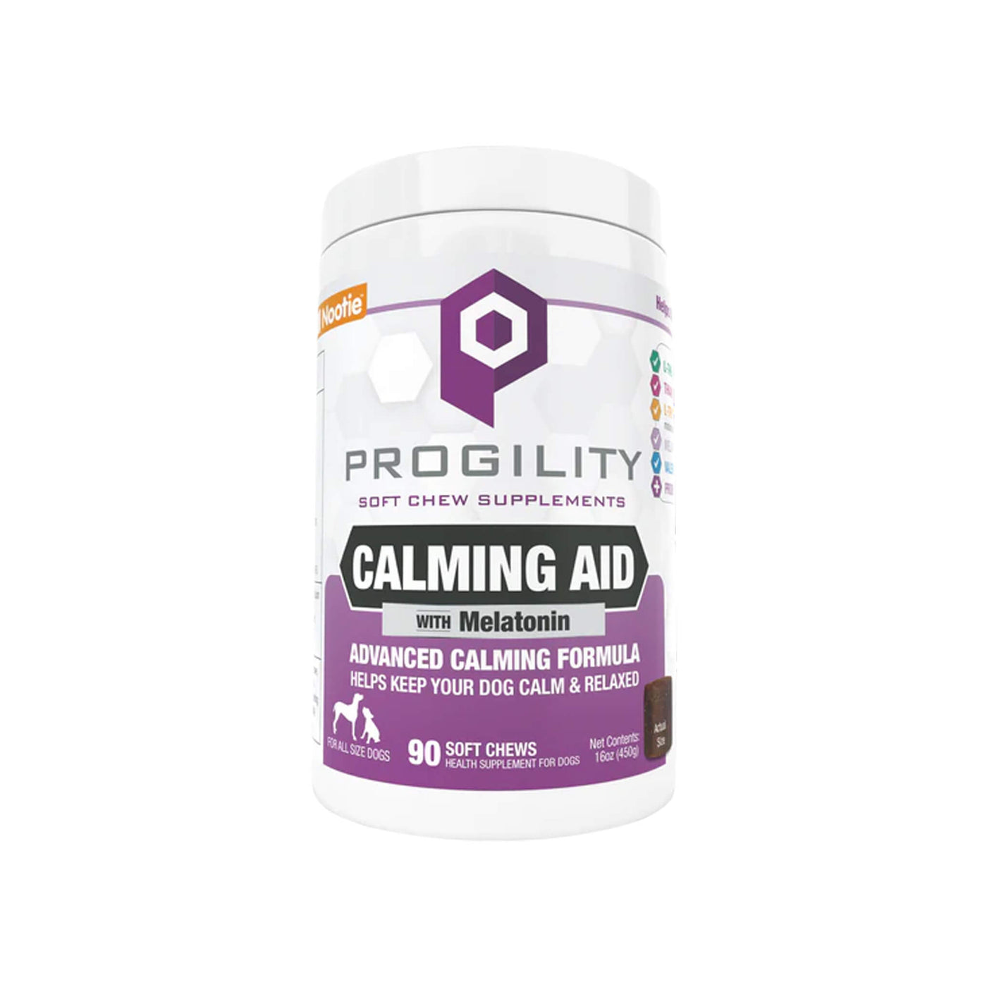 Ideal for travel, loud noises, separation, or nighttime use, Nootie Progility Calming Supplement for Dogs comes in soft chews that are easy to give daily. This calming aid with melatonin for dogs promotes calm without drowsiness, helping your dog feel more secure in stressful situations.