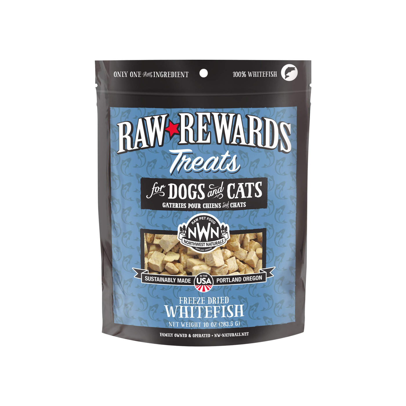 Most flavors come in 1 size. Beef liver, beef heart, chicken breast, chicken heart, pork heart, pork liver, and whitefish are available in a economical 10oz bag.