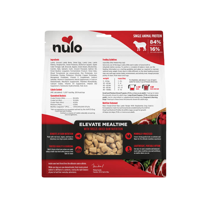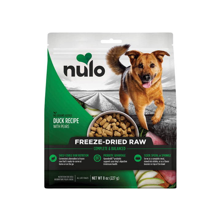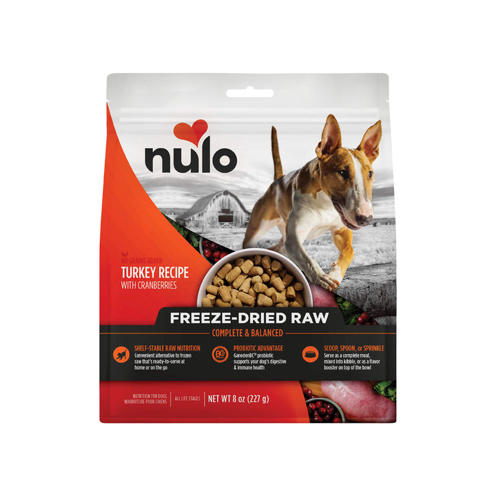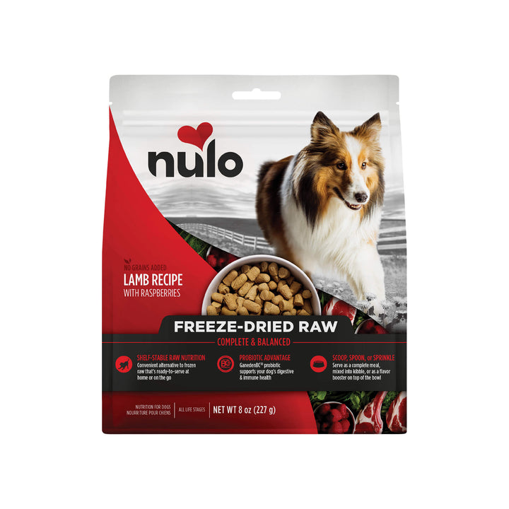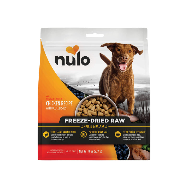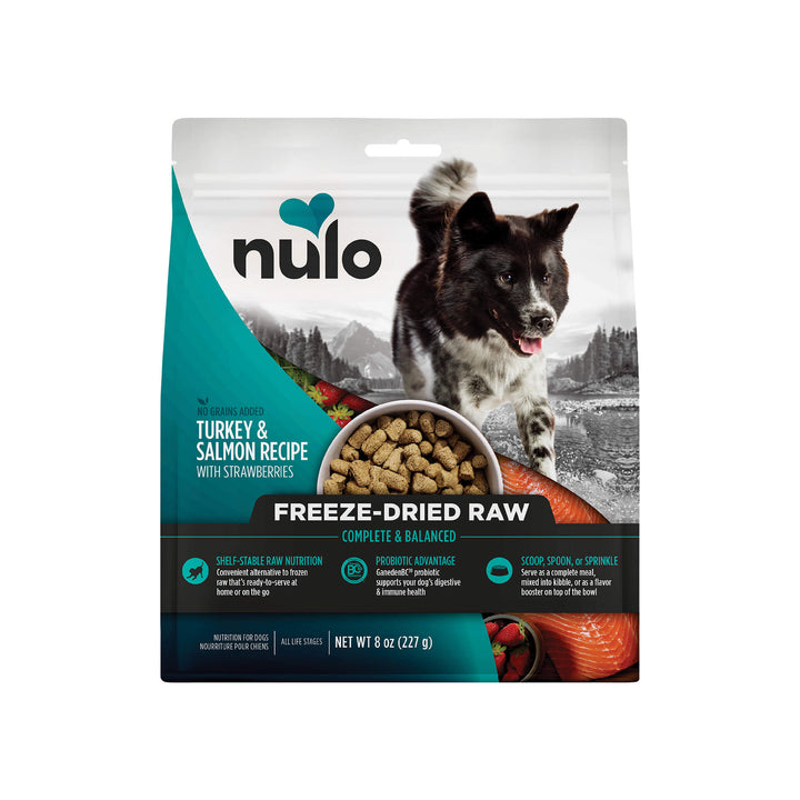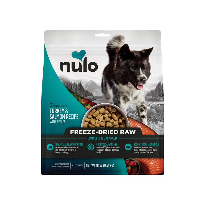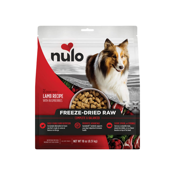 Nulo Freestyle Freeze Dried Dog Food is grain free and features a unique, patented probiotic strain that is able to keep it's nutrients in tact even after being cooked! Introduce raw into your dog's diet without all the hassle with Nulo FreeStyle Freeze Dried Dog Food.