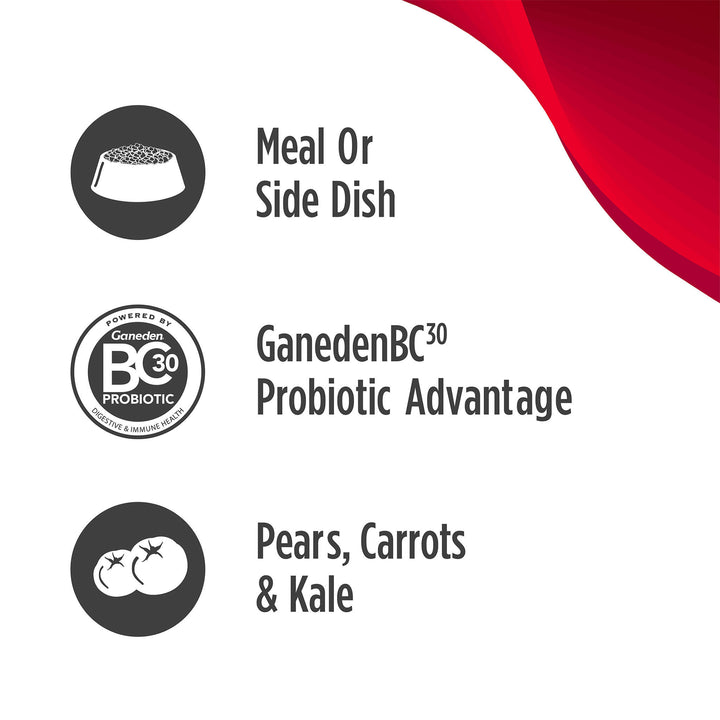 INGREDIENTS: Beef, Beef Heart, Beef Liver, Beef Kidneys, Ground Beef Bone, Apples, Broccoli, Sweet Potato, Carrot, Kale, Spinach, Parsley, Blueberries, Apple Cider Vinegar, Ground Flaxseed, Salmon Oil, Salt, Sunflower Oil, Dried Kelp, Inulin, Dried Bacillus coagulans Fermentation Product, Potassium Chloride, Zinc Proteinate, Iron Proteinate, Mixed Tocopherols (as preservative), Vitamin E Supplement, Copper Proteinate, Manganese Proteinate, Vitamin D3 Supplement.