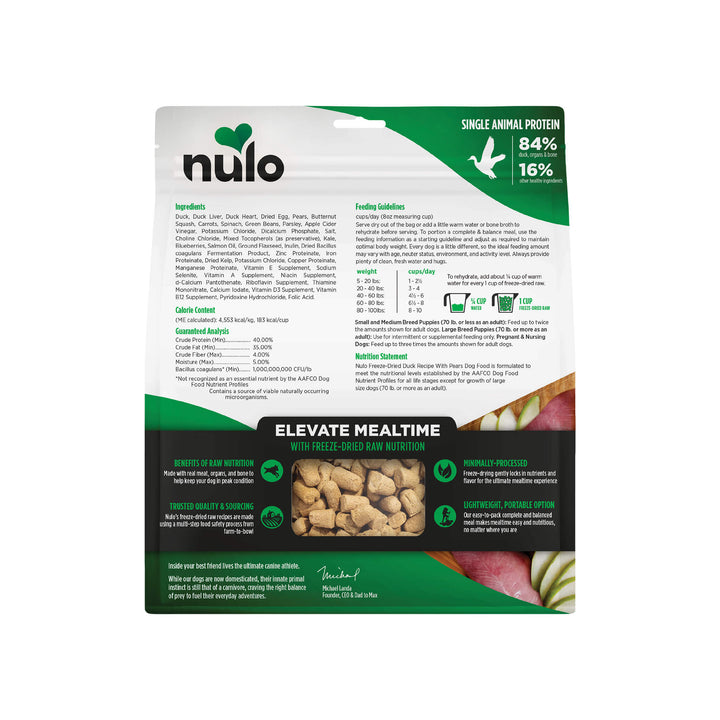 Nulo FreeStyle Freeze Dried Dog Food offers a convenient way to supplement raw into your dog's diet. This simplified raw food features at least 80% real meat protein gently freeze dried to maintain nutrition and flavor. This unique formal can be fed as a complete and balanced meal, or nutritious topper!