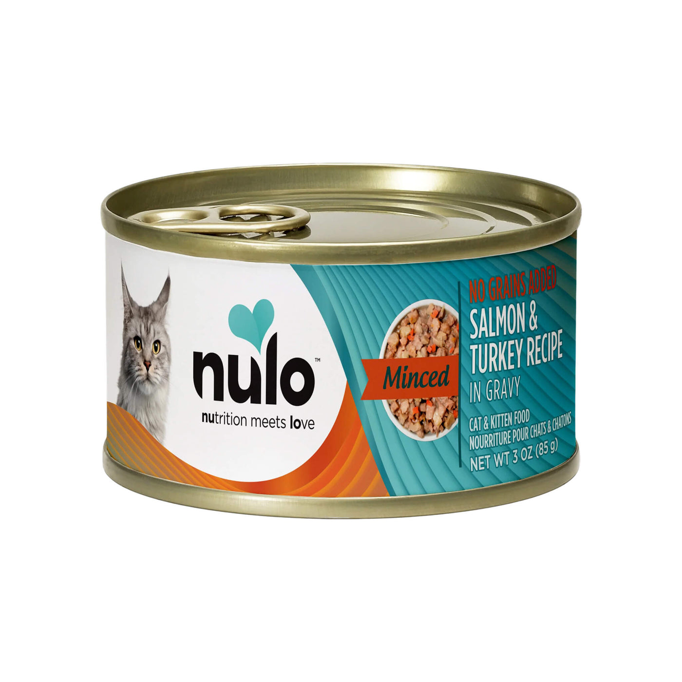 Made without grains, carrageenan, or artificial additives, Nulo Freestyle Grain-Free Minced Wet Cat Food includes functional ingredients like taurine, pumpkin, and cranberries. This minced cat food is complete and balanced for all life stages, including kittens and adult cats.
