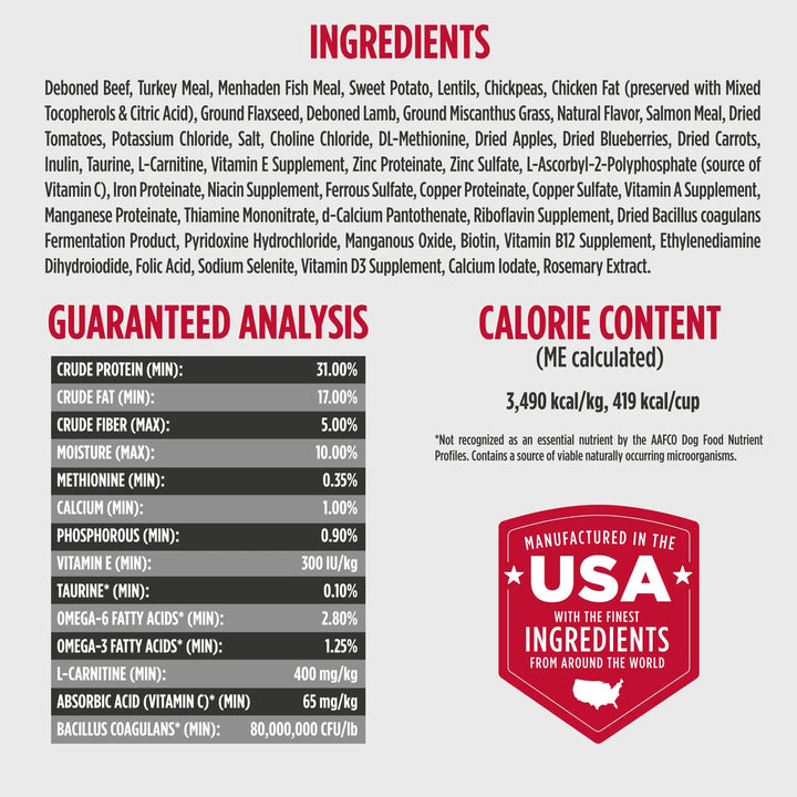 - Omega Fatty Acids: Helps promote healthy skin and a shiny coat year-round.