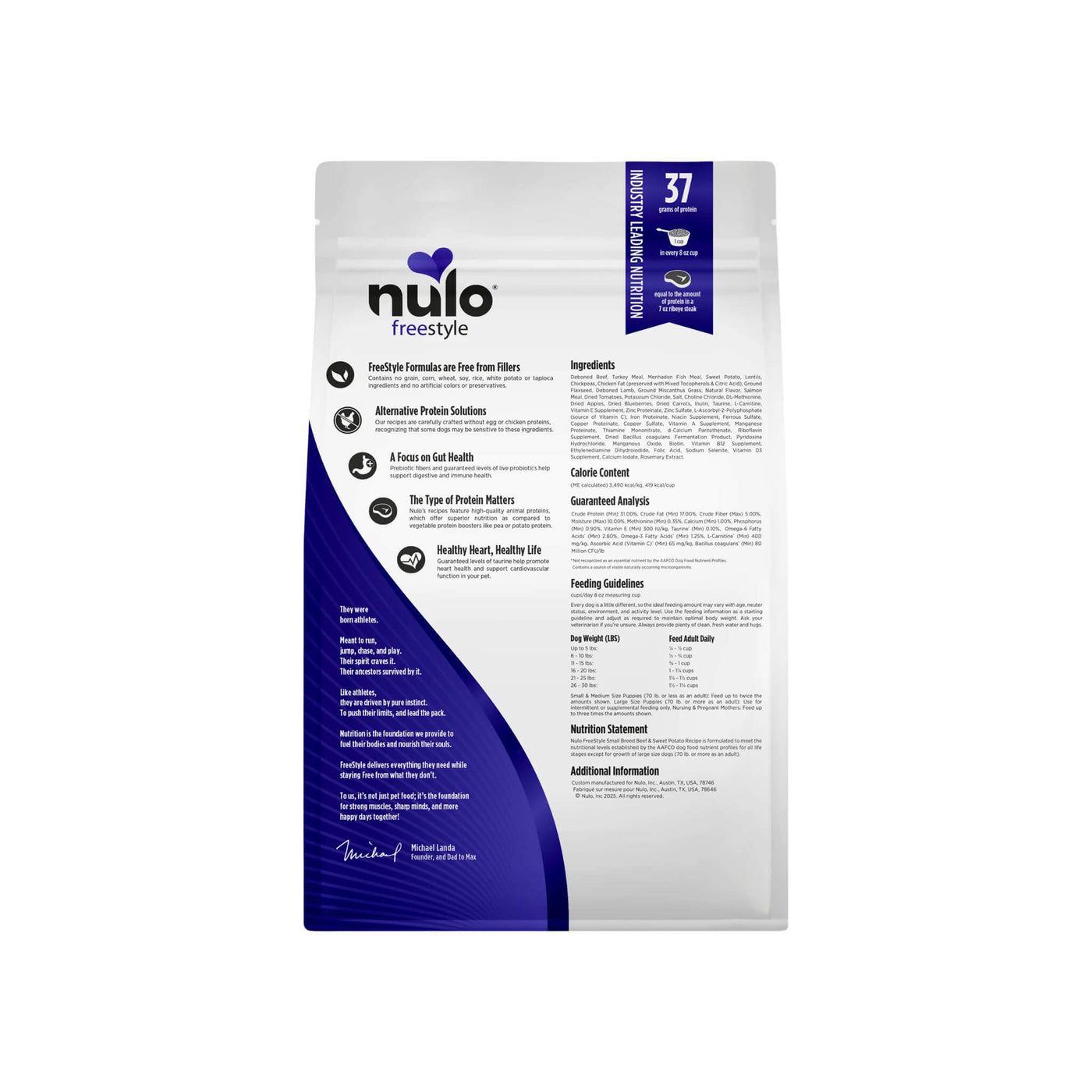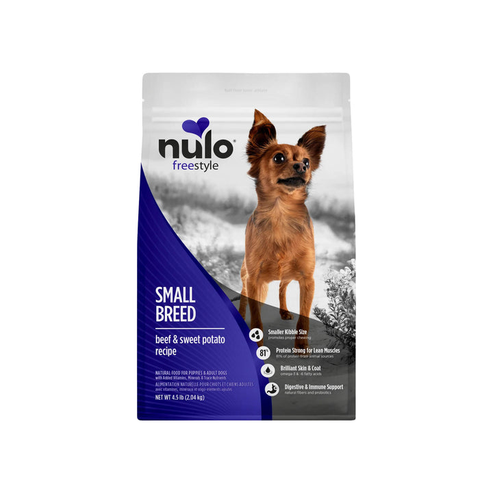 Nulo Freestyle Small Breed Dog Food is formulated to meet the energy needs of active small dogs. This high protein grain-free dog food features premium animal proteins for lean muscle support, plus healthy fats for sustained energy.